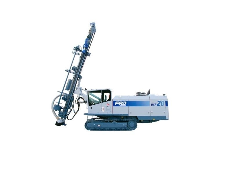 DCR 20 este un echipament de perforare dotat cu ciocan de fund DTH, pentru diame tre de gaura de 89-165 mm la o adancime maxima de 40 m.Designul utilajului permite perforarea economica in orice conditii, sistemul de monitorizare 3D asigurand precizia si amplasarea corecta a gaurilor de impuscare in conformitate cu mono -grafia proiectata. DCR 20 este echipat cu un motor termic Caterpillar C-13 de 328 kW, pompe hidraulice cu debit variabil si un compresor Airman de inalta presiune, ce furnizeaza aerul comprimat necesar functionarii ciocanului de fund la o presiune de 25 bar ai un debit de 24 m. Echipamentul DCR 20 este compact, de inalta performanta si ofera si guranla maxima. De asemenea, designul lui DCR 20 permite realizarea unei mentenante eficiente in